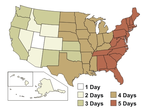 Refer to the following map for UPS Ground* Guaranteed Day-Definite Delivery times from our warehouse. *3 Day Select, 2nd Day Air and Next Day Air shipping also available for an additional fee. Shipping to Alaska and Hawaii via UPS 2nd Day Air. |
